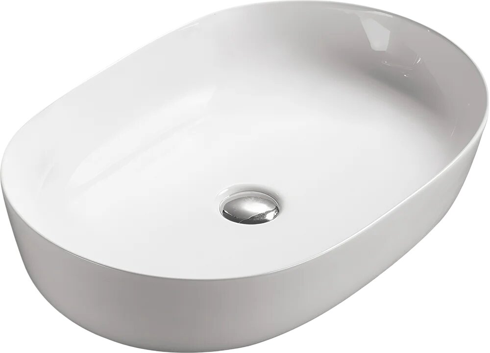 Купить Накладная раковина SantiLine SL-1028 60 фаянсовая, без отверстия под смеситель, белая, овальная, 60 см, российская с доставкой по всей России.
