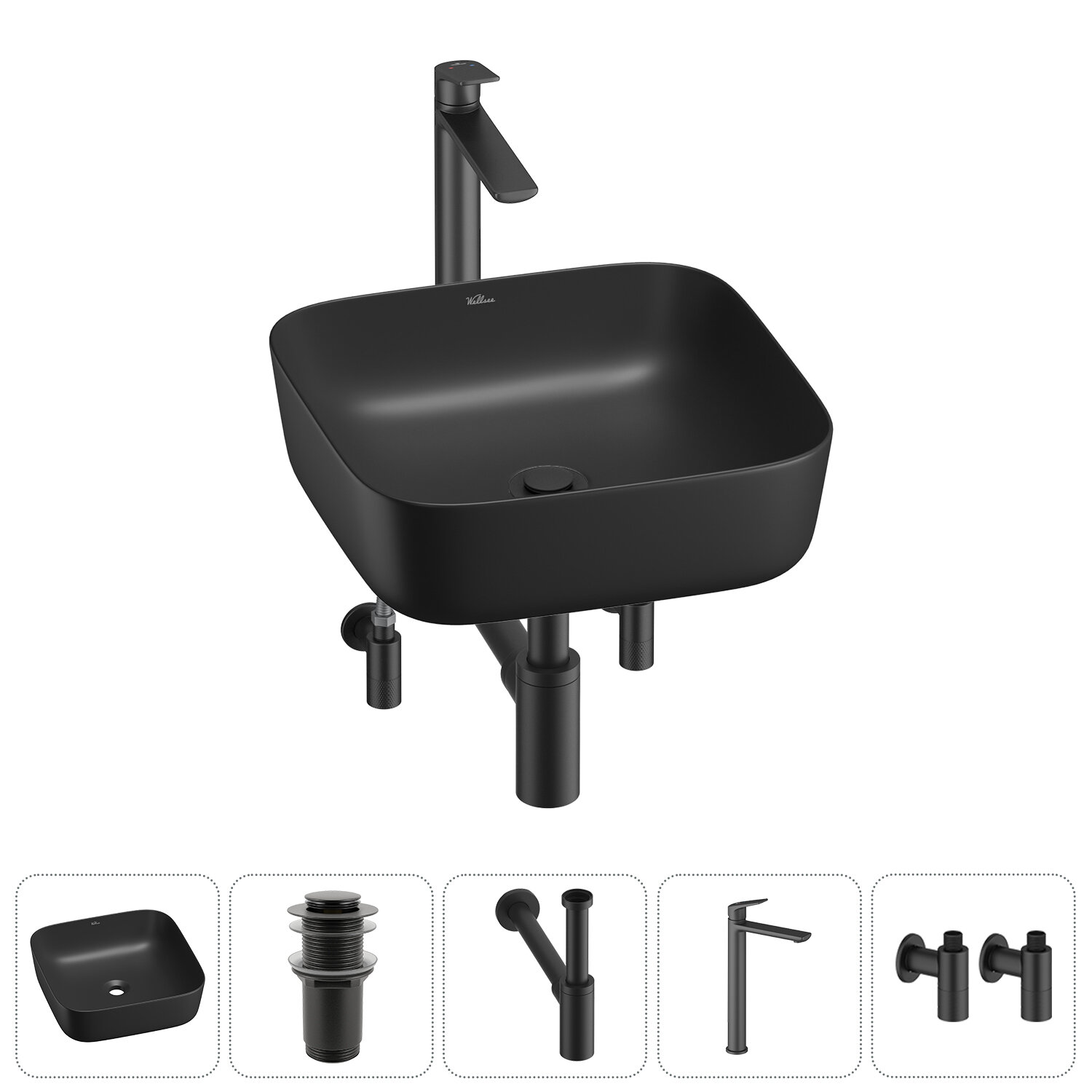 Купить Накладная раковина в ванную комнату Wellsee Preen 20214201R в наборе 5 в 1: раковина 39 см в цвете матовый черный, донный клапан, сифон, смеситель, вентили (цвет набора матовый черный) с доставкой по всей России. Накладная раковина в ванную комнату Wellsee Preen 20214201R в наборе 5 в 1: раковина 39 см в цвете матовый черный, донный клапан, сифон, смеситель, вентили (цвет набора матовый черный): сравнение цен, характеристики, фото, актуальное наличие и цены.