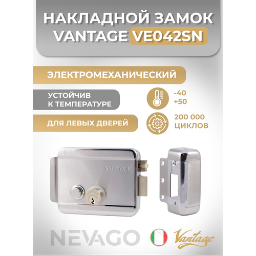 Купить Накладной электромех. замок (хром) Vantage 042 SN R (правый) с доставкой по всей России. Накладной электромех. замок (хром) Vantage 042 SN R (правый): сравнение цен, характеристики, фото, актуальное наличие и цены.