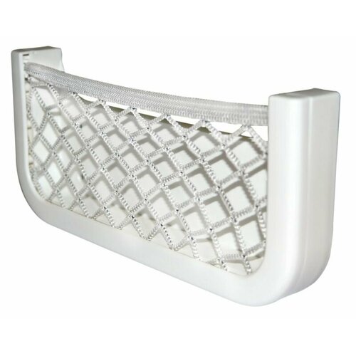 Сетка для хранения предметов. Рама из белого Абс-пластика с эластичной сеткой из плетеного нейлона. Крепится на самоклеящуюся тыльную часть либо посредством четырех шурупов.