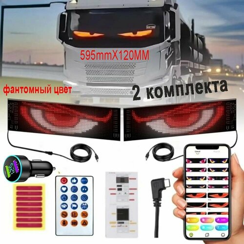глаза на лобовое стекло светодиодные, Размер изделия: Длина 595 мм Ширина 120 ммАвтомобильный светодиодный экран 1 5V USB с APP и пультом дистанционного управленияПоверните головы с помощью гибкой автомобильной светодиодной панели - передового светового аксессуара, который превратит ваш автомобиль в световое шоу. Используя высококлассную гибкую светодиодную матрицу в сочетании с программируемой схемой, заключенной в гибкий липкий полимер, эта панель позволяет прикрепить ее в любом месте и легко отклеить в любое время без каких-либо проблем. Просто подключите поставляемый в комплекте USB-шнур 5 В или банк питания и наслаждайтесь! Многофункциональный пульт дистанционного управления: Используйте пульт для мгновенного переключения между 17 предварительно загруженными анимациями на автомобильную тематику или вашими собственными изображениями! Быстрое отображение всего, что вам нужно, с легкостью. Простота применения: Светодиодный дисплей имеет прочный, водонепроницаемый и пылезащищенный липкий полимер, сохраняющий гибкость для легкого нанесения на любое окно без клея. Отклеивайте его без проблем в любое время, а для постоянного использования в комплект входит двусторонний клей. Кроме того, в комплект входит многофункциональный пульт дистанционного управления и кабель USB 5M 5V для универсального размещения в автомобиле, на предприятии или дома. Неограниченная настройка через APP с телефона: Разблокируйте все функции для максимальной персонализации, подключившись по Bluetooth с помощью приложения на устройстве Apple или Android. Получите доступ к свободному рисованию, загружайте свои собственные изображения или GIF-файлы, а также просматривайте библиотеку пользовательского контента. Технические характеристики: В комплект входят: Светодиодная панель, кабель USB 5M 5V, QR-код для загрузки приложения (LOYPLAY), клей 3M для постоянного применения и пульт дистанционного управления. Меры предосторожности: в комплект входят две панели. У нас есть изображения левого и правого глаза для двух устройств. Они работают независимо друг от друга и должны подключаться к приложению по очереди. Есть два способа синхронизировать их: Выберите изображения для каждой панели и включите их вместе. Пульт дистанционного управления может управлять более чем одним устройством. Установите изображения для кнопок пульта ДУ (всего 17 кнопок) для каждого устройства и используйте пульт ДУ для управления обоими. Понятные инструкции по смене изображений на пульте ДУ