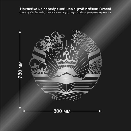 Наклейка герб Таджикистана серебряный 800*780: стильный аксессуар для вашего автомобиля