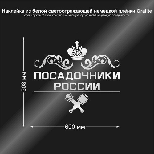 Купить Наклейка на авто Посадочники России, цвет белый светоотражающий, 600х508 мм с доставкой по всей России. Наклейка на авто Посадочники России, цвет белый светоотражающий, 600х508 мм: сравнение цен, характеристики, фото, актуальное наличие и цены.