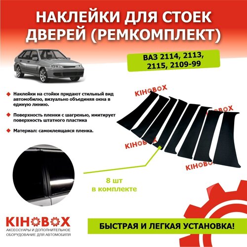 Наклейки для стоек дверей (ремкомплект) на ВАЗ 2109-99, 2113,2114,2115, 8 шт, черные Tolplastik АРТ 5002001.