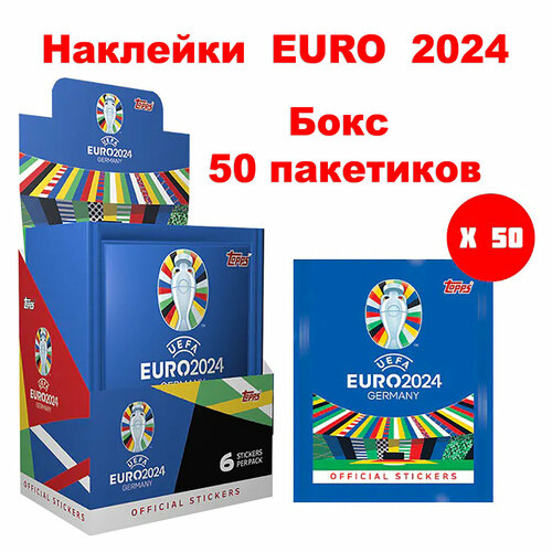 Купить Наклейки ( футбольные карточки ) для коллекционирования EURO 2024, бокс 50 пакетиков, 300 наклеек с доставкой по всей России.