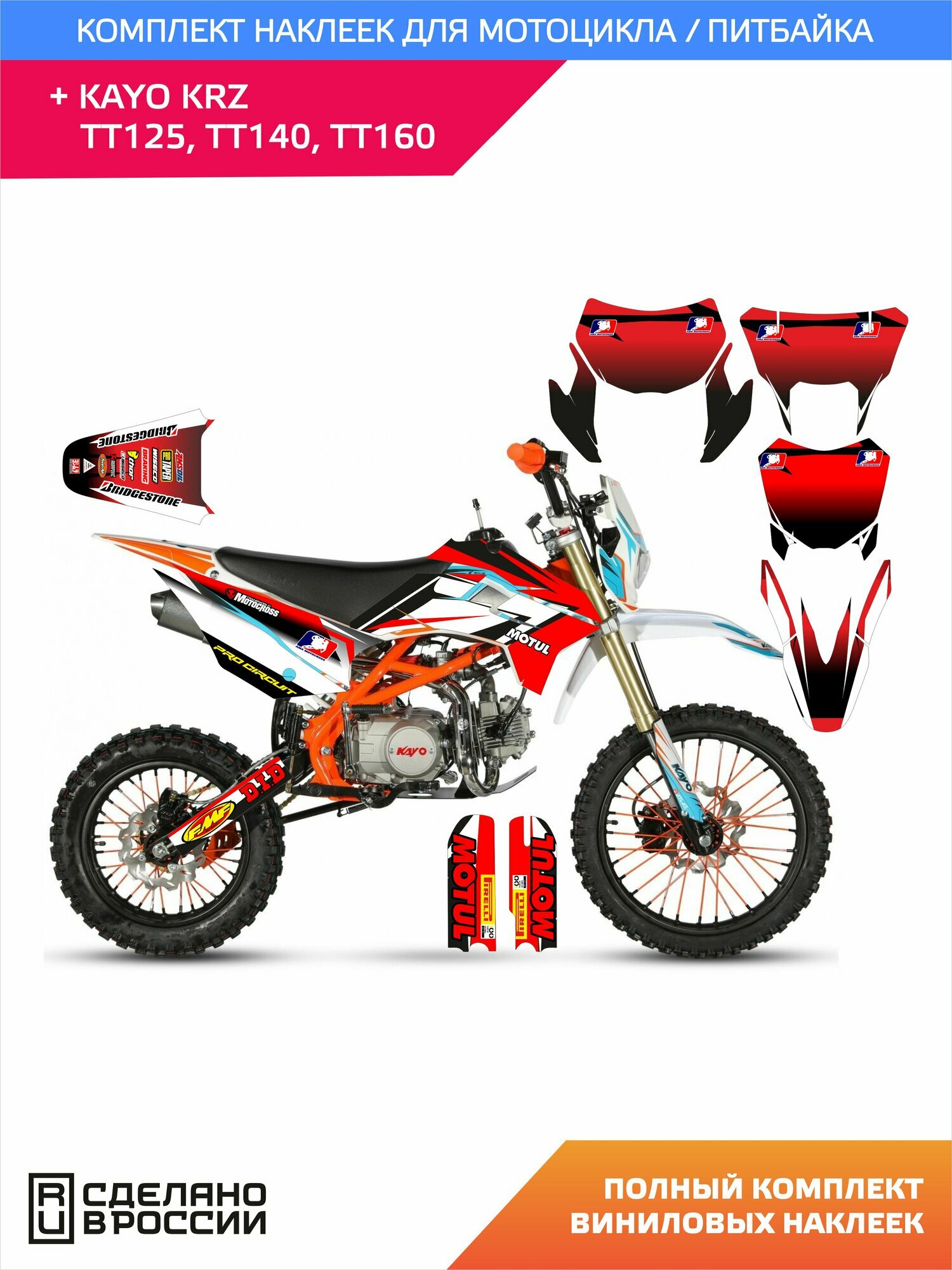 Наклейки на питбайк KAYO KRZ TT BASIC TT EVOLUTION YX медиум