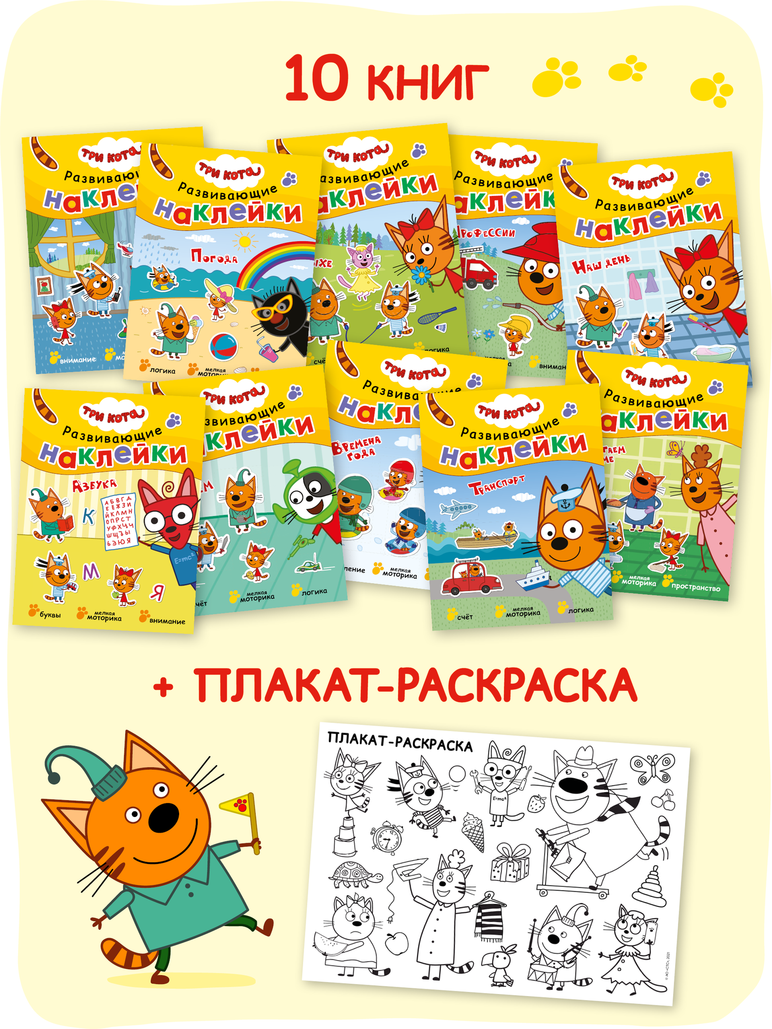 Купить Наклейки развивающие «Три кота» для детей, набор из 10 книг, 380 наклеек, плакат-раскраска в подарок с доставкой по всей России. Наклейки развивающие «Три кота» для детей, набор из 10 книг, 380 наклеек, плакат-раскраска в подарок: сравнение цен, характеристики, фото, актуальное наличие и цены.