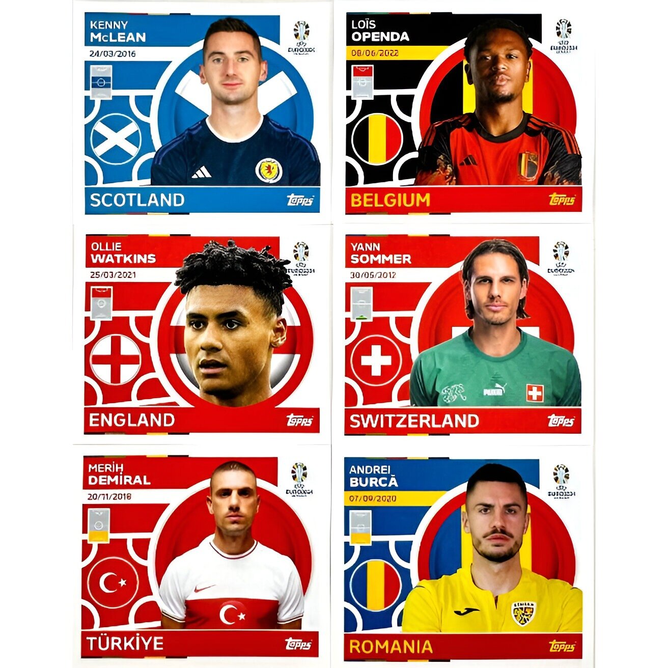Полная коллекция Topps UEFA™ Чемпионат Европы по футболу 2024 в Германии состоит из 728 коллекционных наклеек. Современный и красочный дизайн вдохновлен атмосферой и особенностями евро 2024.