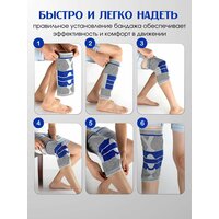 Модернизированный дизайн - устранены дефекты аналогичной продукции. Можно использовать как медицинский коленный бандаж: он не вызывает аллергии и зуда. Благодаря металлическим пружинным кронштейнам и силиконовой накладке бандаж не будет легко спадать во время использования. Нескользящая силиконовая полоска и высокоэластичная ткань позволяет не скользить бандажу вверх-вниз, и не скатываться во время упражнений.