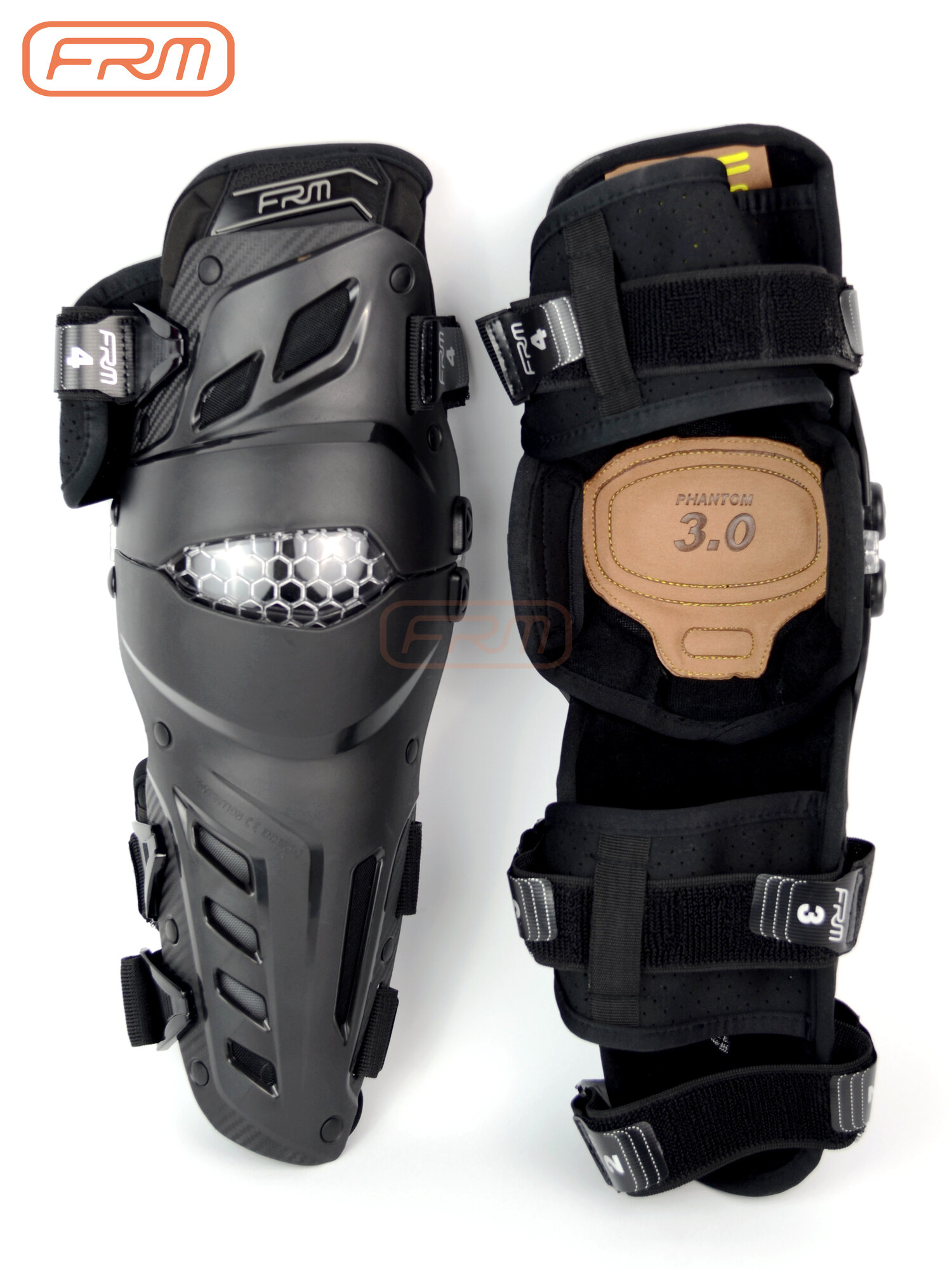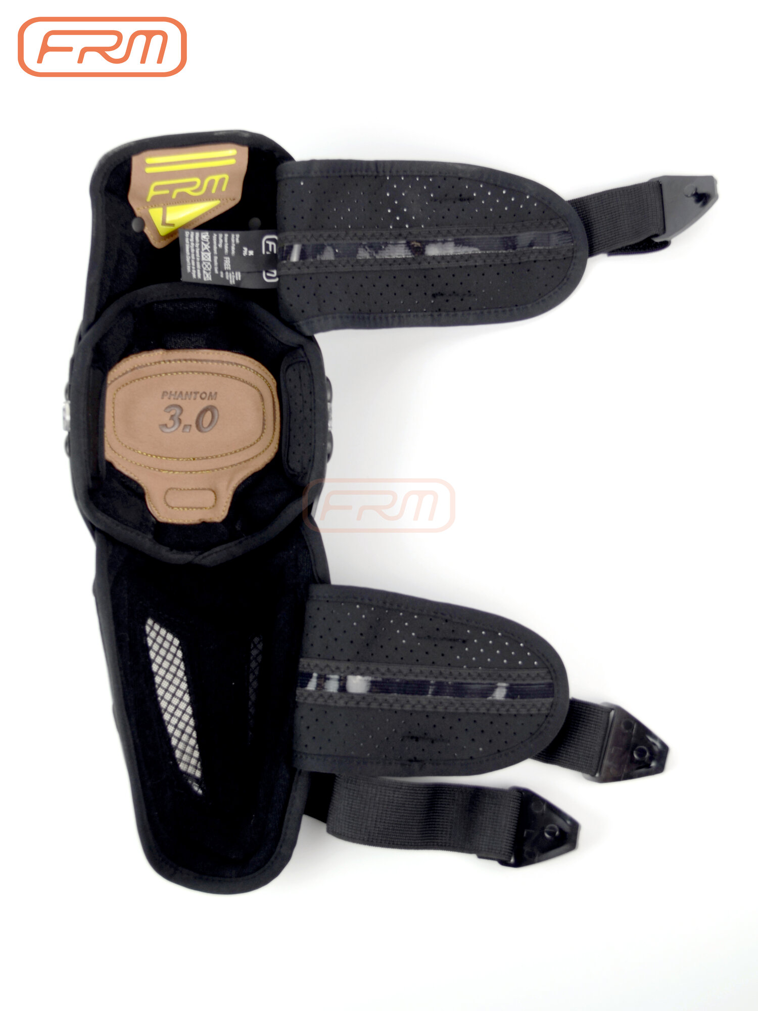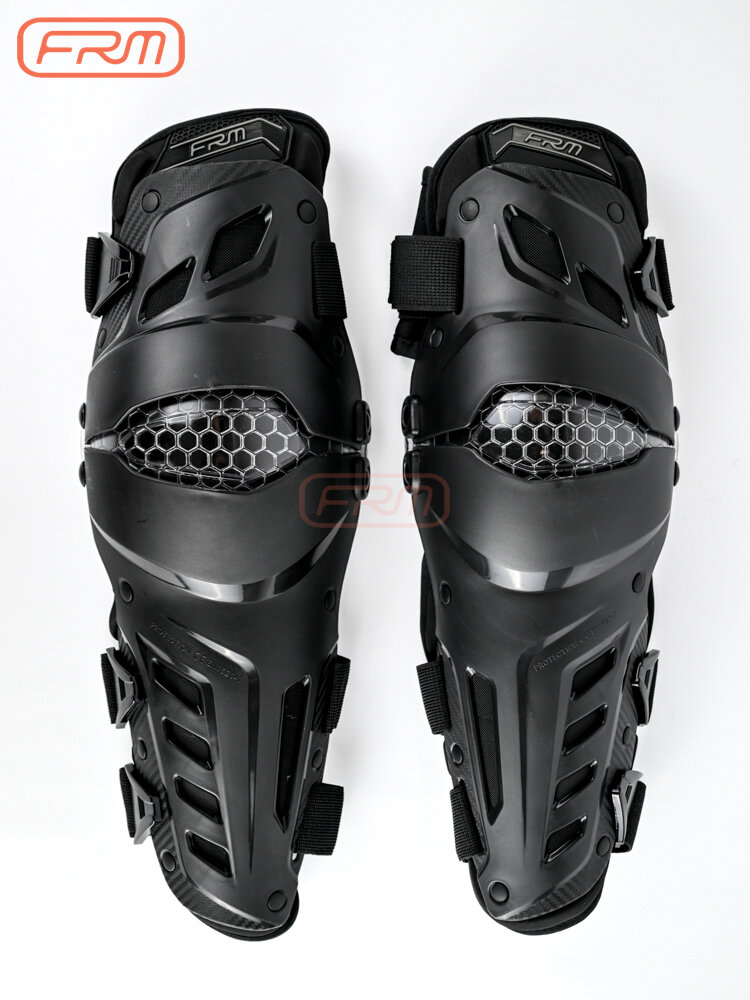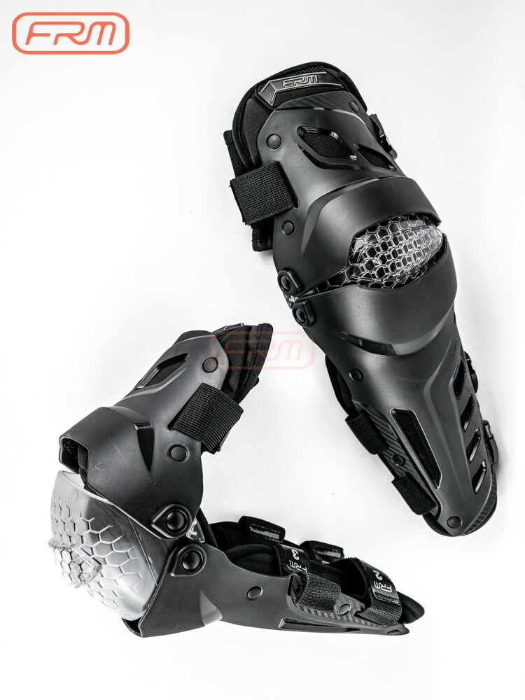 Данные шарнирные наколенники от бренда FRM с диапазоном сгибания от 30 до 180° и двухосевой конструкцией, регулируемыми эластичными ремнями из сетчатого материала с быстросъёмными замками, вентиляционными отверстиями и перфорацией, сетчатыми вставками в подкладке, сертифицированные по стандарту безопасности EN 1621-1:2012 идеально подойдут для любого уровня подготовки как на, так и под экипировку.