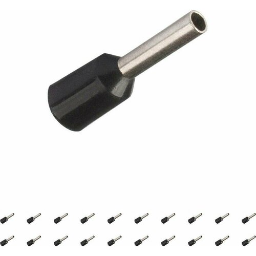 Максимальное напряжение для наконечника данного типа составляет 690 В. Коннектор изготовлен из электротехнической меди марки М1, Имеет луженое электролитическое покрытие. Пластиковая изоляция наконечника выполнена из полипропилена. Зачищенный конец многопроволочного провода заводится внутрь полой концевой трубки и затем опрессовывается вместе с трубкой при помощи специального инструмента, образуя единую конструкцию, надежно фиксирующую пучок многопроволочной жилы. Количество наконечников в упаковке: 100 шт. Серия — НШВИ. Диапазон допустимых сечений проводников — 1.5 мм². Материал — Медь луженая. Цвет — Черный. Диаметр — 3.6 мм.