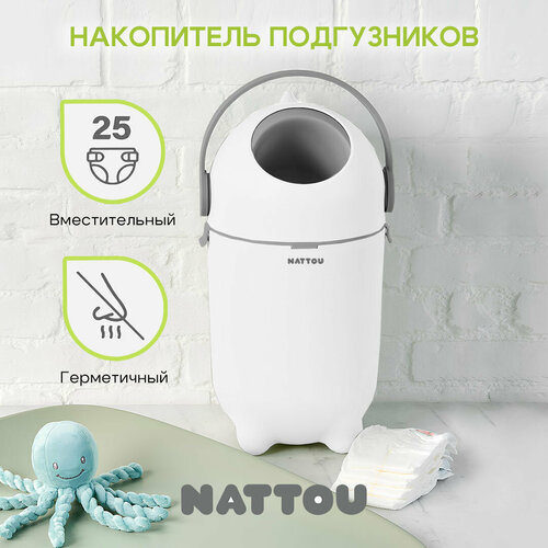 Накопитель подгузников Nattou (нату) - удобное устройство для быстро и удобной утилизации подгузников. Компактный накопитель не занимает много места, выглядит очень стильно и прекрасно впишется в интерьер детской комнаты.