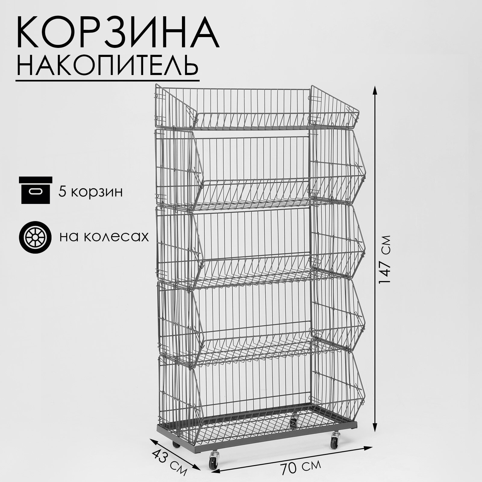Купить Накопитель разборный на колесах, 5 корзин, 70×43×147, цвет серый с доставкой по всей России. Накопитель разборный на колесах, 5 корзин, 70×43×147, цвет серый: сравнение цен, характеристики, фото, актуальное наличие и цены.