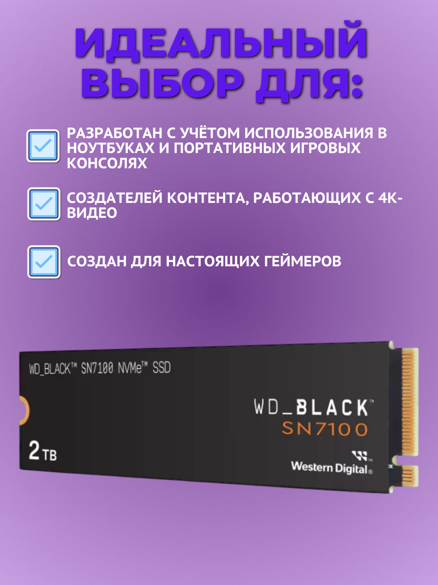 Купить Твердотельный накопитель SSD WD Western Digital SN7100 2 тб, чёрный WDS200T4X0E с доставкой по всей России.