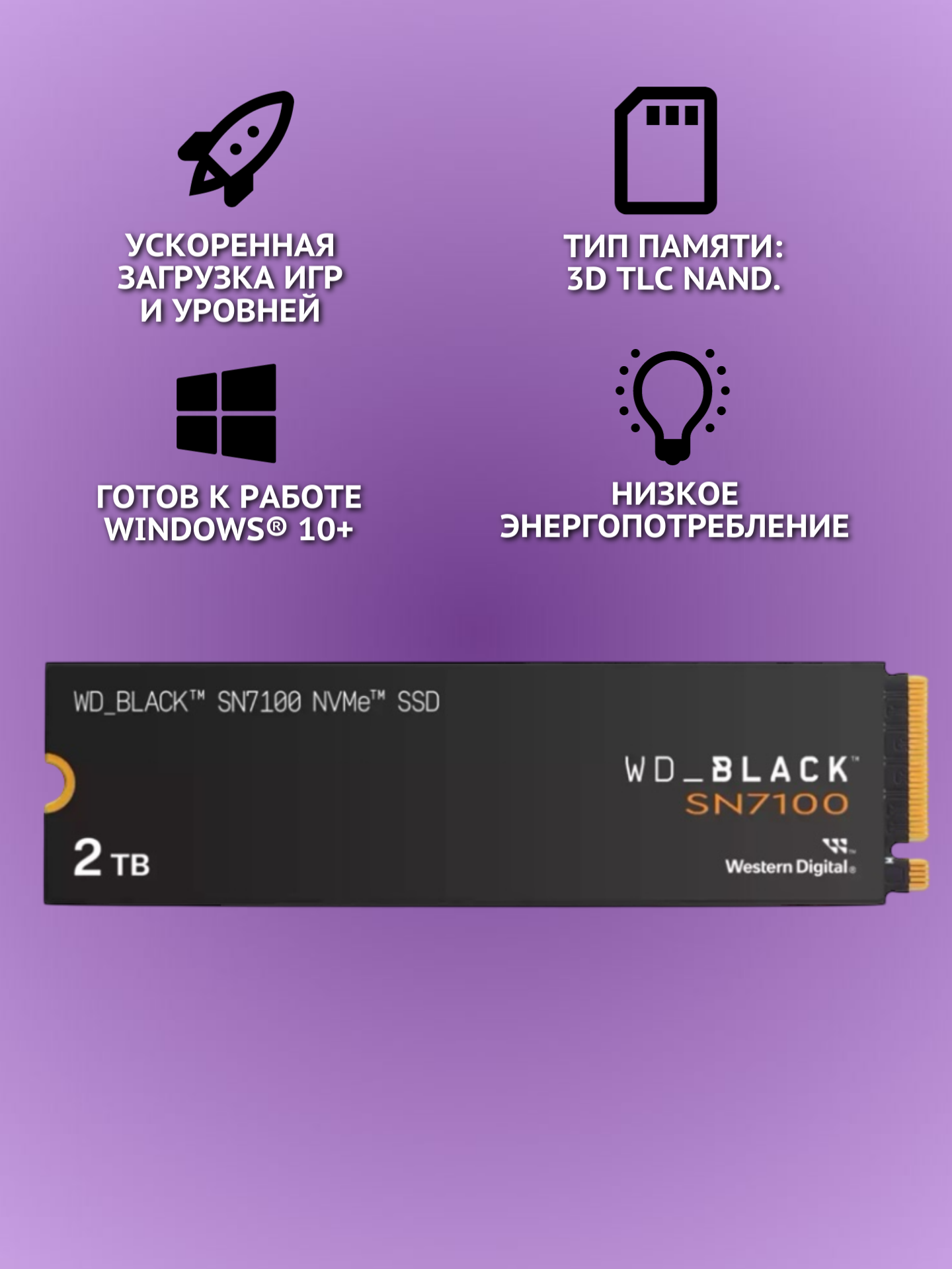 Твердотельный накопитель SSD WD Western Digital SN7100 2 тб, чёрный WDS200T4X0E: сравнение цен, характеристики, фото, актуальное наличие и цены.