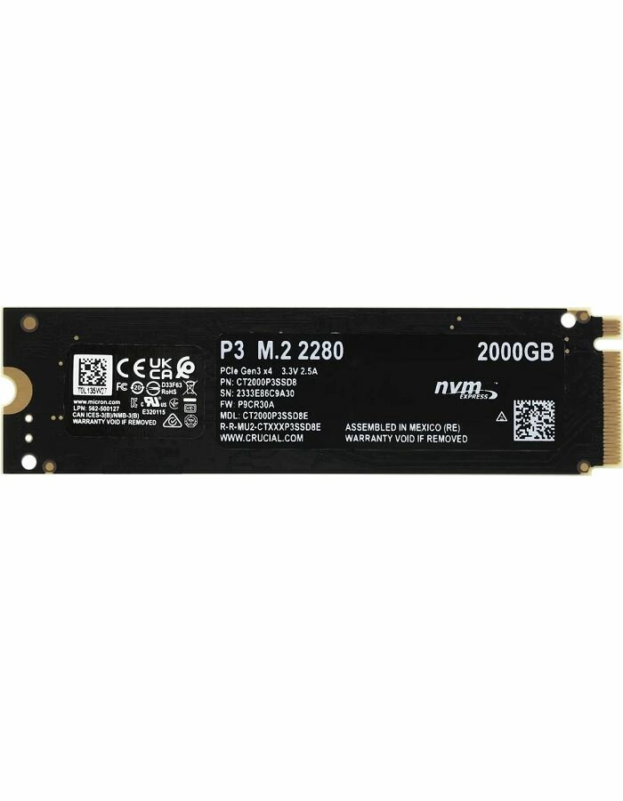 Накопитель SSD Crucial CT2000P3SSD8 M.2, 2000ГБ, 4 бит QLC, 3D NAND, QLC, PCIe 3.0 x4: сравнение цен, характеристики, фото, актуальное наличие и цены.