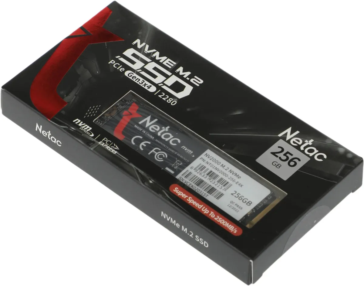Накопитель SSD Netac NV2000, 256GB, PCIe 3.0 x4, M.2 2280, NVMe, R/W 2500/1000: сравнение цен, характеристики, фото, актуальное наличие и цены.