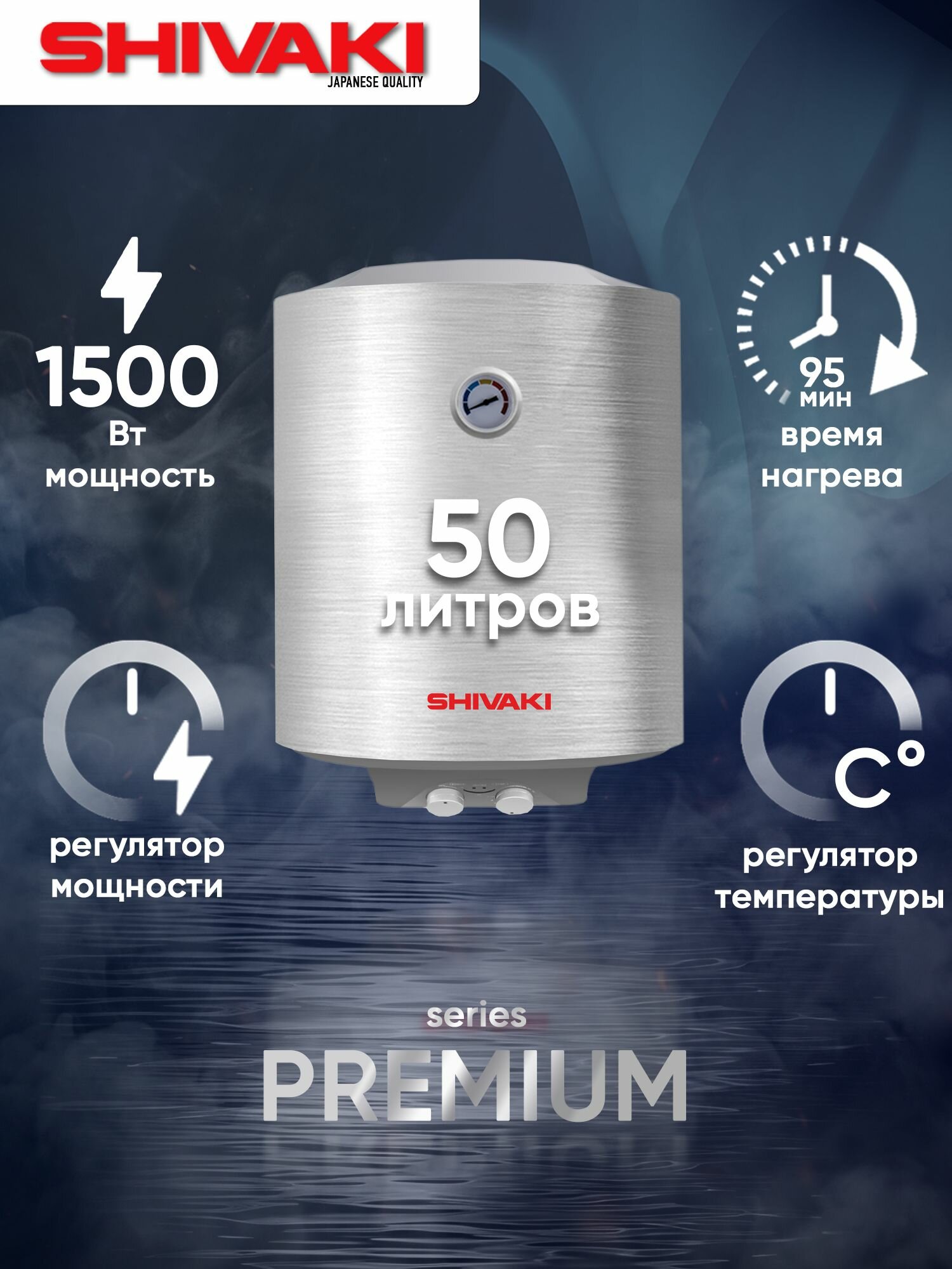 Водонагреватель накопительный SHIVAKI WH 1.5кВ Premium, 50 литров, серебристый: сравнение цен, характеристики, фото, актуальное наличие и цены.