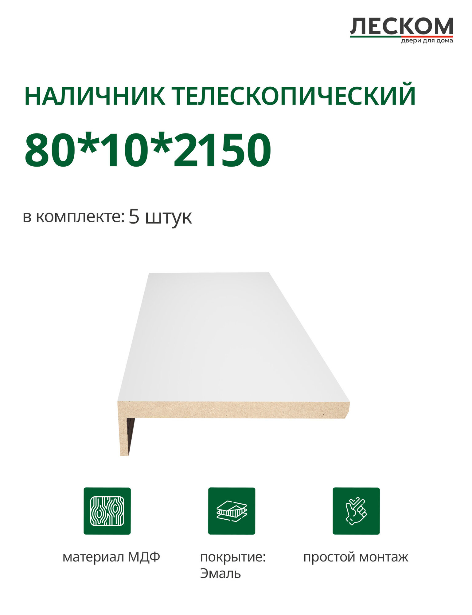 Купить Наличник телескопический Леском прямой 80х10х2150 мм (5 шт), эмаль белая с доставкой по всей России. Наличник телескопический Леском прямой 80х10х2150 мм (5 шт), эмаль белая: сравнение цен, характеристики, фото, актуальное наличие и цены.