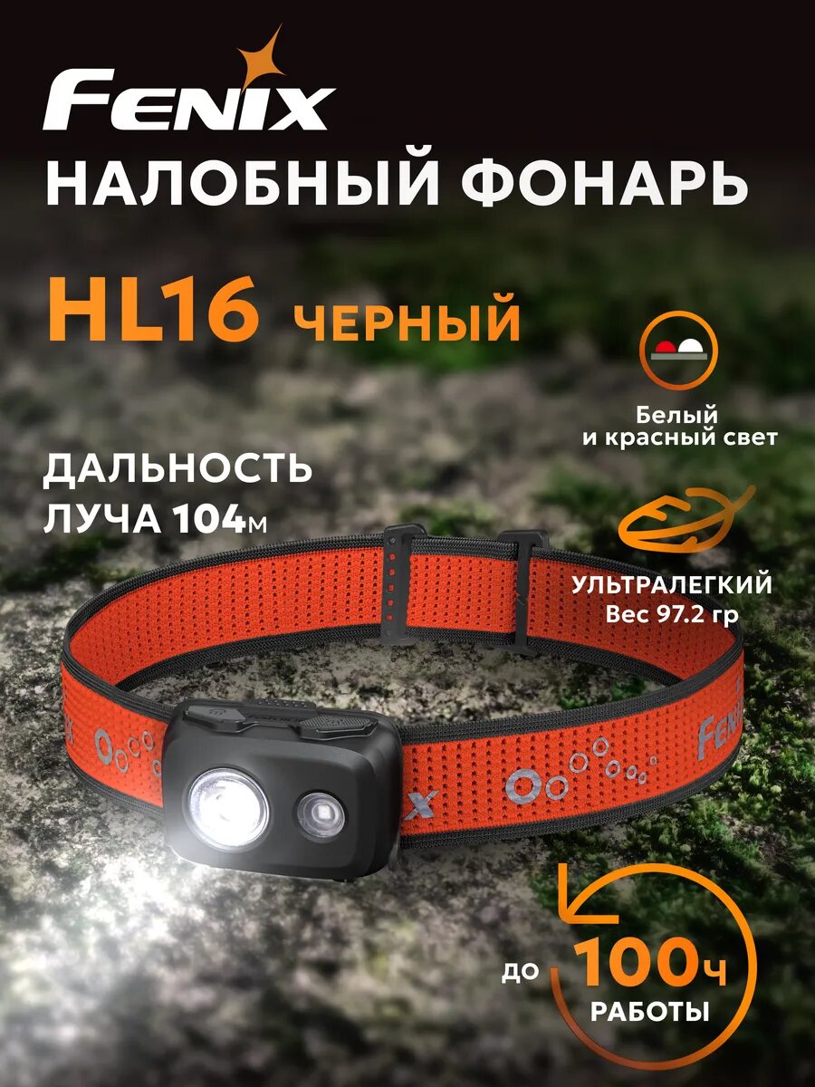 Налобный фонарь Fenix HL16, 3 батарейки типоразмера ААА, перфорированное оголовье, гарантия, инструкция пользователя.