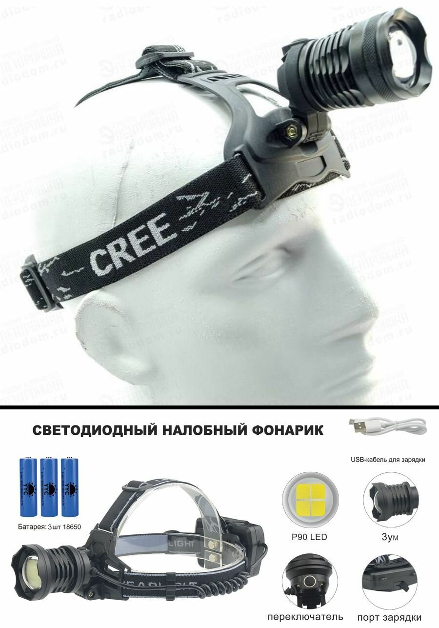 Купить Налобный головной фонарь для рыбалки . Светодиодный фонарь налобный. Светодиод P90 с доставкой по всей России.
