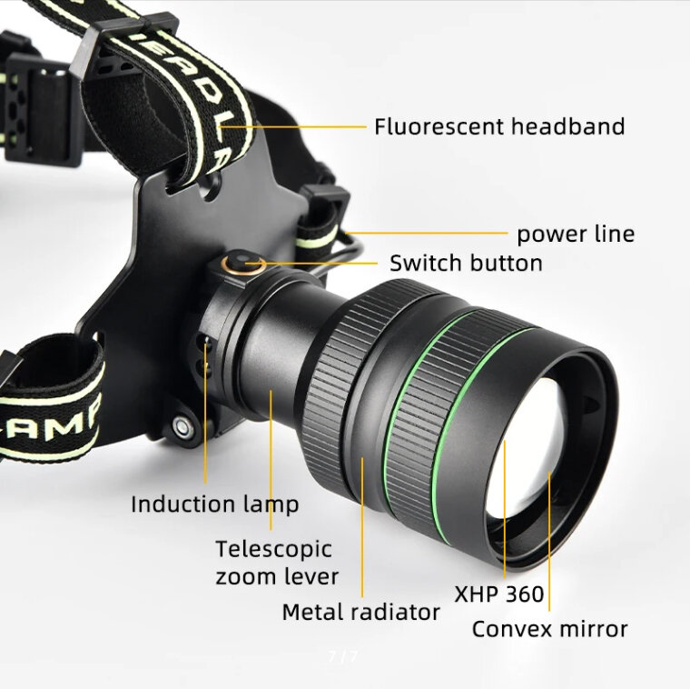 Налобный светодиодный P360 фонарь — бесконтактное управление, зум, задний свет: сравнение цен, характеристики, фото, актуальное наличие и цены.