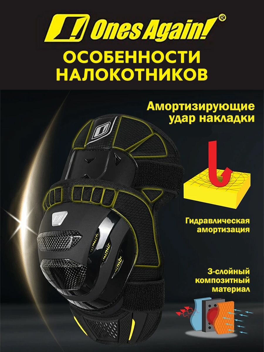 Мото/вело налокотники Ones Again EP13 выполнены из ударопрочного пластика, поглощающего силу удара. Великолепный дизайн с использованием карбоновых вставок в сочетании с небольшими размерами дает преимущество относительно других моделей.