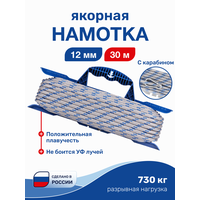Купить Намотка якорная 12мм 30м разрывная нагрузка 730 кг на мотовиле с карабином (NAMD12L30) с доставкой по всей России.