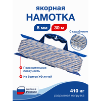 Купить Намотка якорная 8мм 30м разрывная нагрузка 410 кг на мотовиле с карабином (NAMD8L30) с доставкой по всей России.