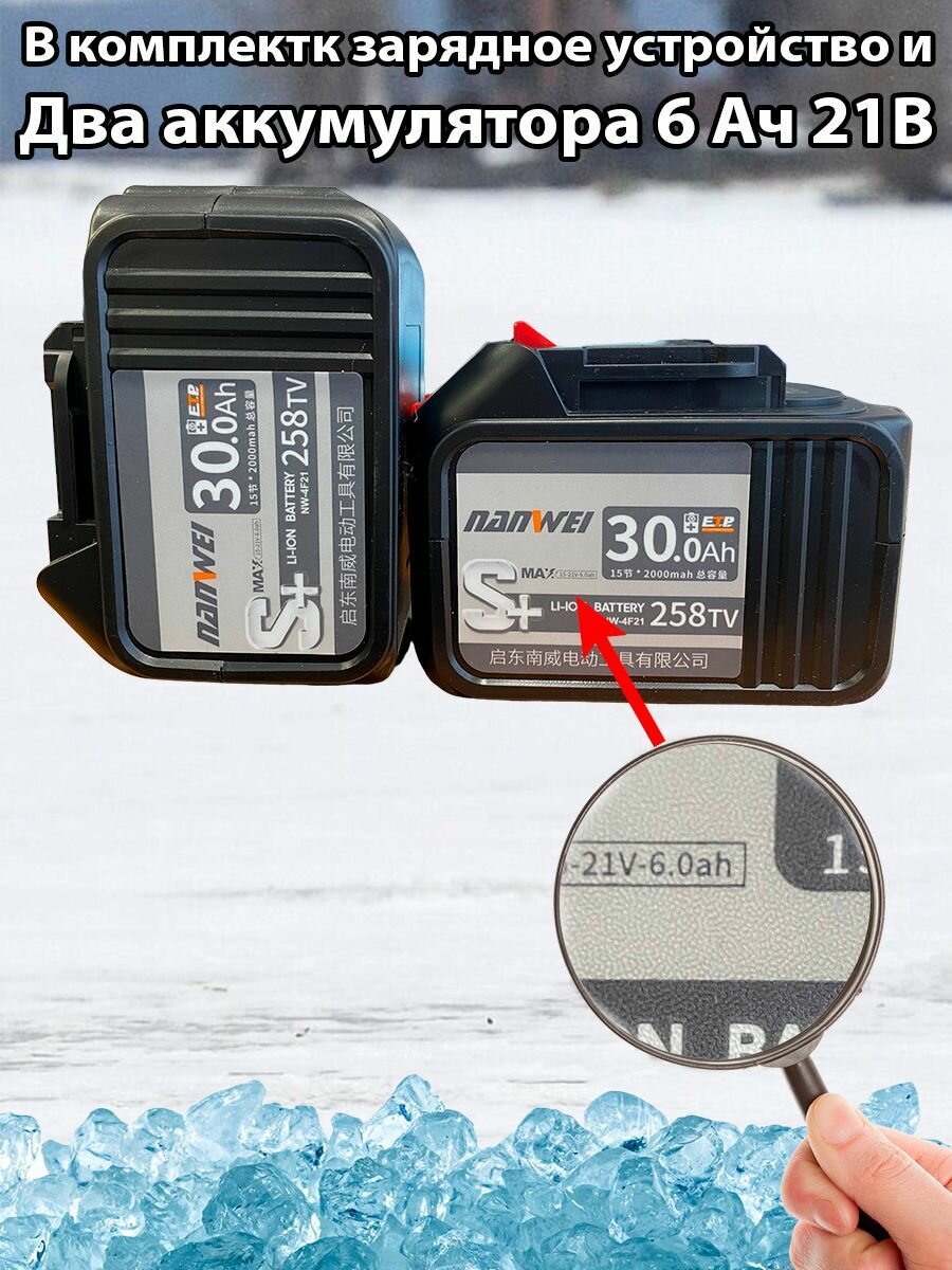 Купить NANWEI Дрель-шуруповерт Ледобур — NW-1X11-1 258TV + 6000mAh, От аккумулятора, 21 В, 150 Нм, 2 АКБ с доставкой по всей России.