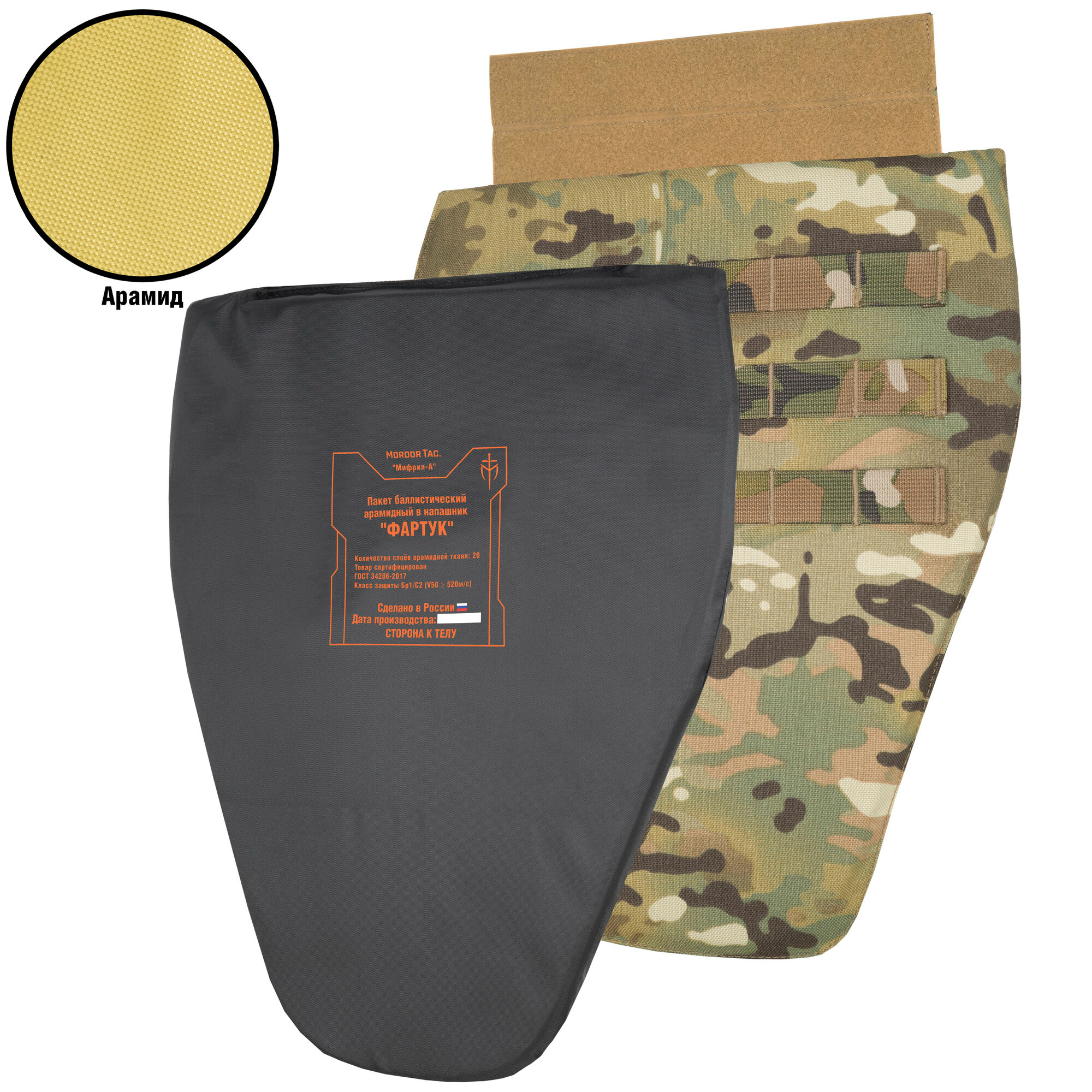 Универсальная защита паховой области "Фартук" от компании Mordor Tac. - это классический напашник с объемным отсеком для установки баллистического пакета, обеспечивающий высокую площадь защиты от осколков.
