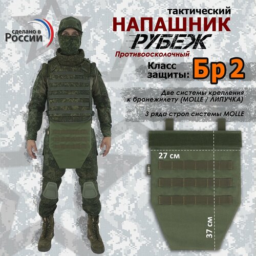 В напашник зашит без возможности извлечения баллистический пакет из слоев свмпэ (сверхвысокомолекулярный полиэтилен) с классом защитной структуры Бр 2 по ГОСТ Р 50744-95 (ГОСТ 34286-2017).