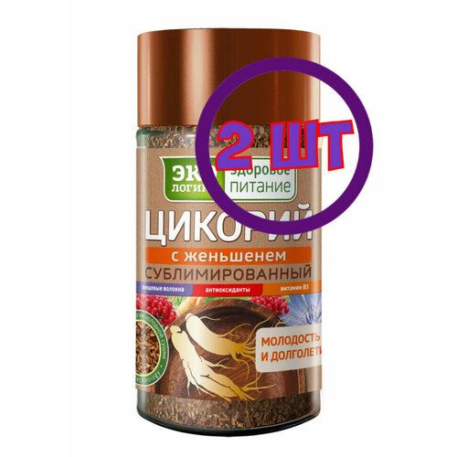 Комплект 2 упаковки. В России появился уникальный инновационный продукт, не имеющий аналогов в мире - сублимированный цикорий Экологика - здоровое питание! Разработанная компанией Экологика технология сублимации цикория позволяет исключить воздействие высоких температур при производстве. Поэтому вкус, аромат, все витамины, микроэлементы и пищевые волокна в сублимированном цикории Экологика - здоровое питание сохраняются в полном объеме. Полезные свойства сублимированного цикория: улучшает пищеварение; нормализует работу поджелудочной железы; снижает гликемический индекс; успокаивает нервную систему; способствует лучшему движению крови; помогает работе сердца; способствует выведению холестерина из организма; снижает вредные отложения солей в организме; растворяет и выводит желчные камни; помогает избавиться от бессонницы; улучшает работу глазных мышц; укрепляет иммунитет; не имеет противопоказаний. Цикорий Экологика с женьшенем 85 гр ст/б — сублимированный напиток из коллекции Экологика, 85 грамм, в стеклянной банке. Цикорий
