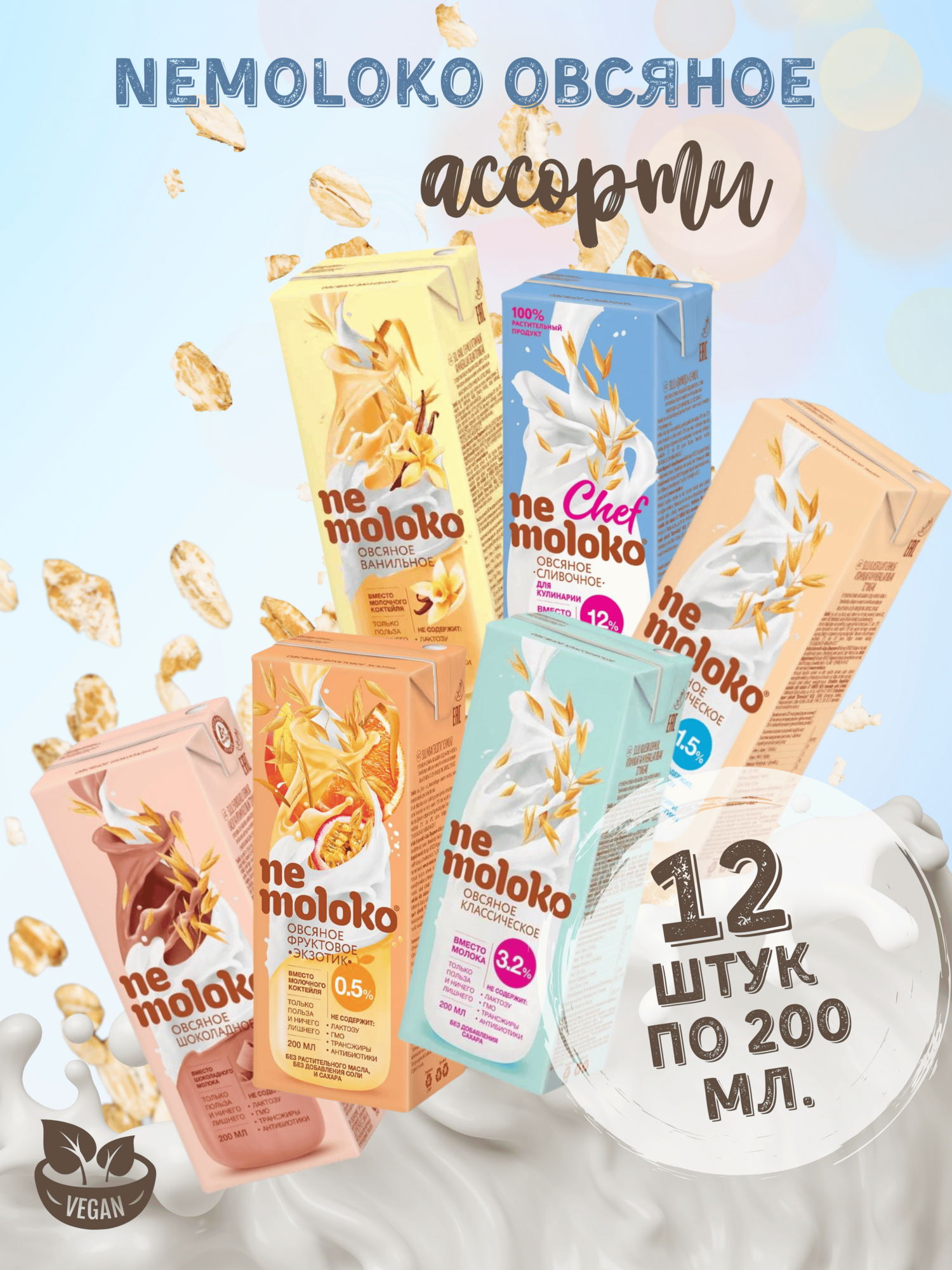 Напиток Nemoloko «Ассорти», овсяный, без ГМО, 200 мл, 12 штук: сравнение цен, характеристики, фото, актуальное наличие и цены.