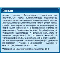 Молоко обезжиренное, лактоза, масла растительные (высокоолеиновое подсолнечное, кокосовое, соевое), концентрат сывороточных белков, пребиотики: олигогалактоза (ГОС), олигофруктоза (ФОС), масло, содержащее докозагексаеновую кислоту (DHA) (рафинированный рыбий жир, смесь токоферолов, аскорбил пальмитат), минеральные вещества (кальция лактат, магния хлорид, калия цитрат, натрия цитрат, железа сульфат, цинка сульфат, меди сульфат, марганца сульфат, йодид калия), витамины: С (L-аскорбиновая кислота), РР (никотинамид), D-пантотенат кальция, А (ретинола пальмитат), В1 (тиамина гидрохлорид), В2 (рибофлавин), В6 (пиридоксин гидрохлорид), ВС (фолиевая кислота), К (фитоменадион), Д3 (холекальциферол), В12 (цианкобаламин), D-биотин, инозит, L-карнитин, лютеин, премикс нуклеотидный (цитидин-5'-монофосфат, уридин-5'-монофосфат, гуанозин-5'-монофосфат, аденозин-5'-монофосфат, инозин-5'-монофосфат).