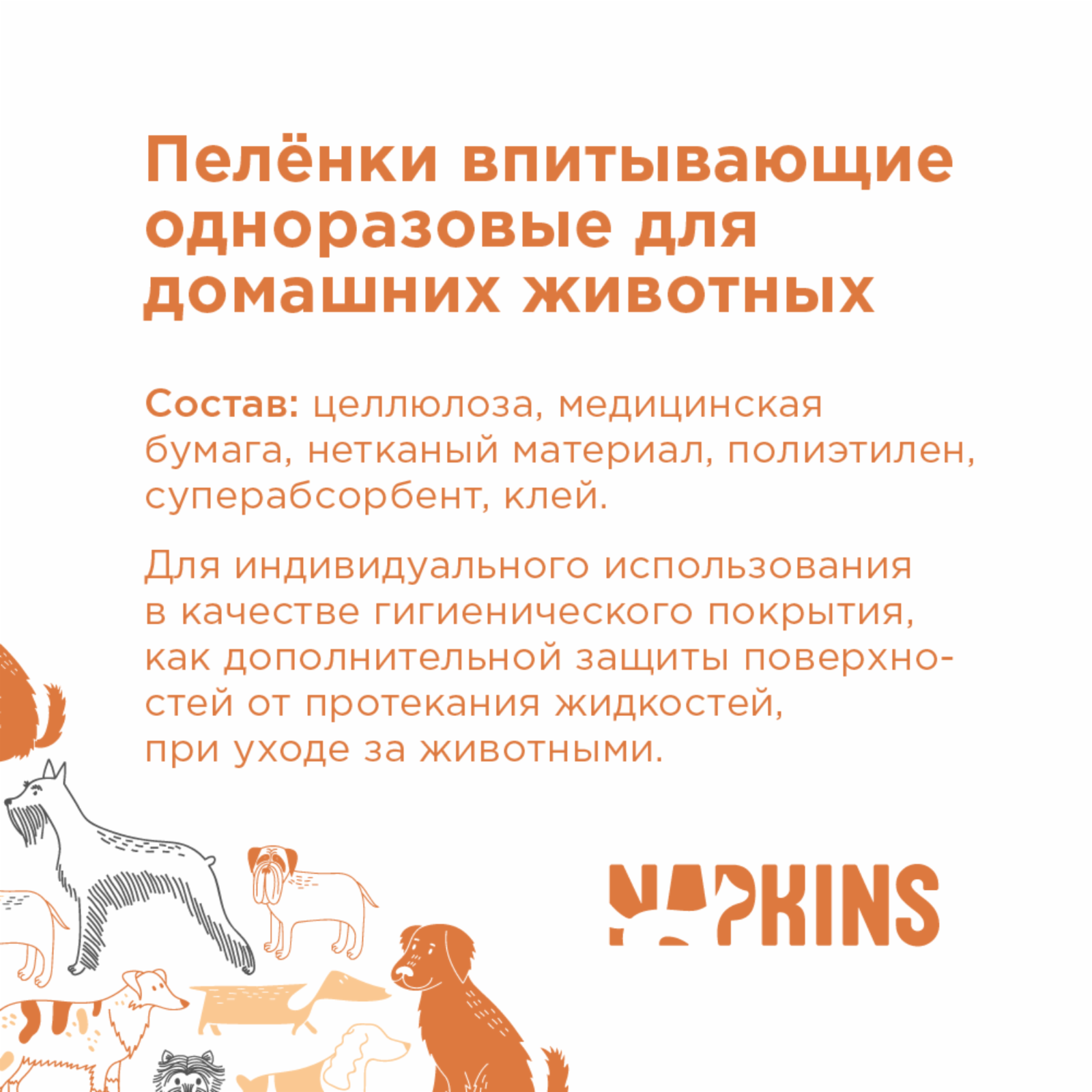 Пеленки впитывающие одноразовые с нижним влагонепроницаемым слоем для животных. Для использования в качестве гигиенического покрытия, как дополнительная защита поверхностей от протекания жидкостей.