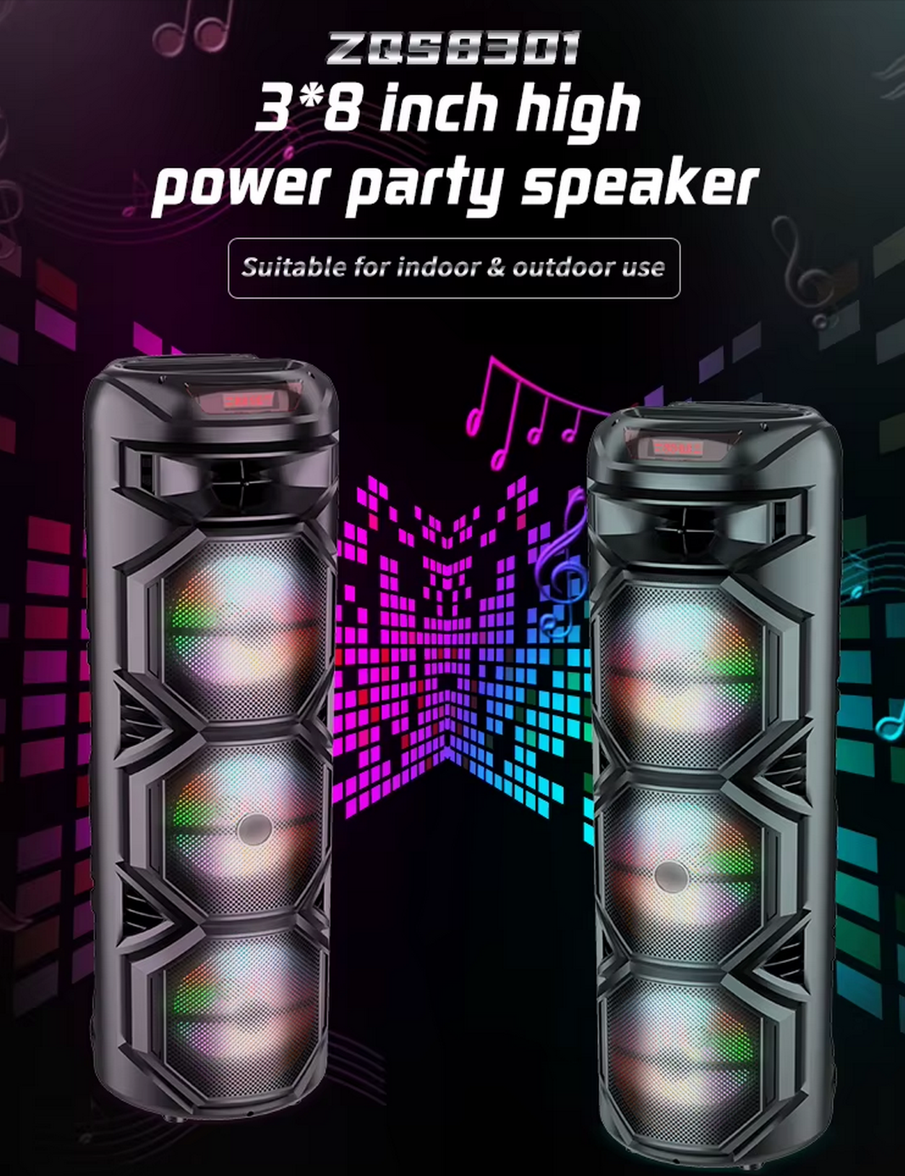 Напольная колонка Sing-e ZQS-8301 (8″60W/4.5A/+бесп. микрофон) (черный)