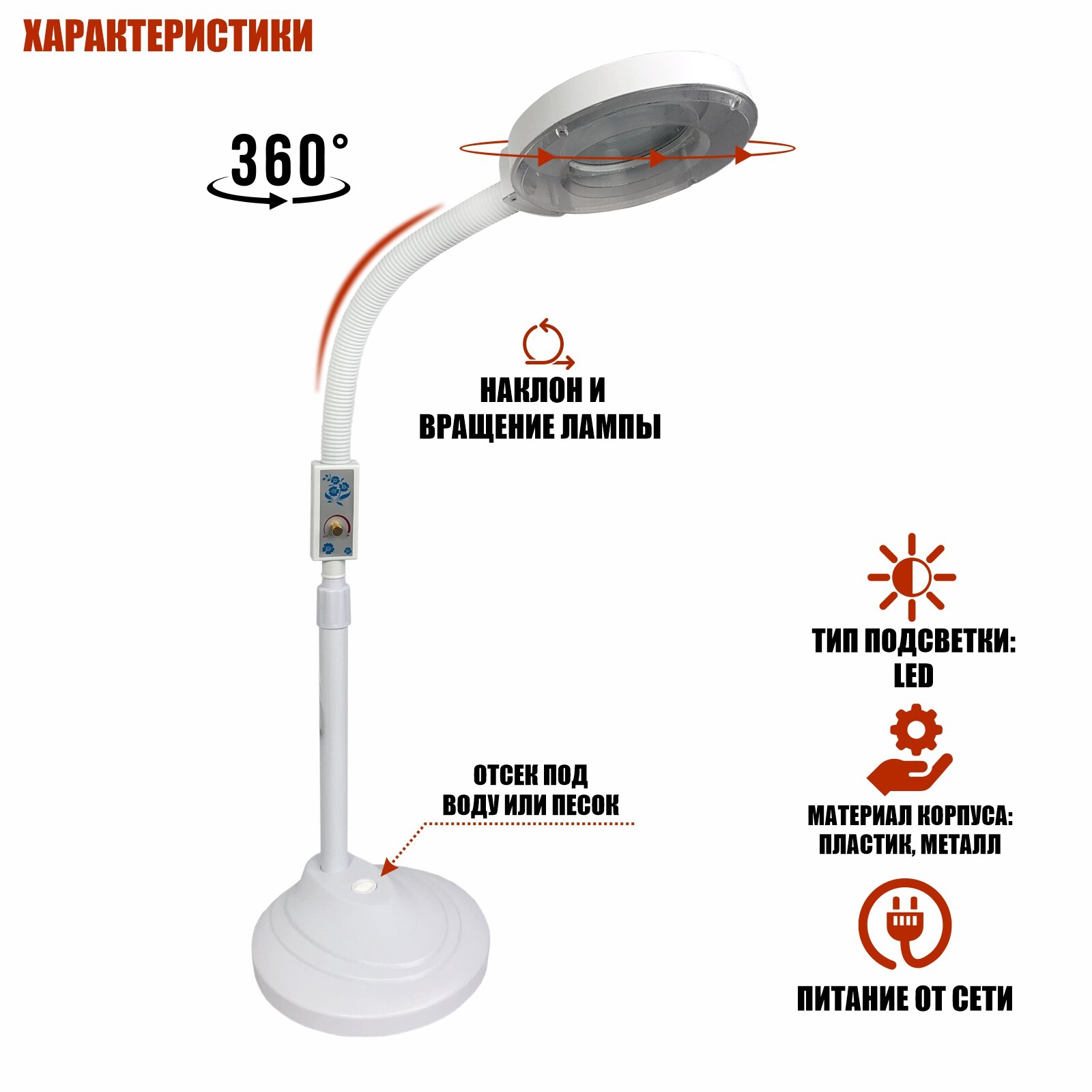 Напольная лампа лупа LLP косметологическая светодиодная с подставкой и колесиками для мобильности: сравнение цен, характеристики, фото, актуальное наличие и цены.