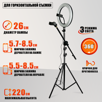 Напольная стойка штатив JBH-G111 с кольцевой RGB лампой 26 см, крючком для противовеса и держателем телефона для горизонтальной съемки: сравнение цен, характеристики, фото, актуальное наличие и цены.