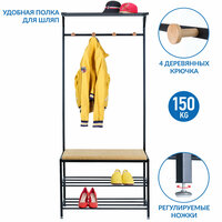 Напольная вешалка для одежды и обуви с банкеткой и 2-я полками для обуви представляет собой многофункциональное и удобное решение для хранения одежды и обуви.