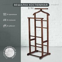 Если у вас еще нет костюмной вешалки, то не сомневайтесь в полезности ее приобретения. Данная модель в отличие от модели В6Н дополнена второй стойкой, на которой расположена перекладина для брюк, это может быть иногда удобнее. Вешалка полностью изготовлена из массива дерева, имеет классический вид, надежна и экономична. Необычную форму плечиков позволила воспроизвести технология гнуто-клееного шпона. Все детали вешалки защищены лаковым покрытием. За вешалкой очень просто ухаживать. Вешалка компактно упакована, имеет небольшой вес, так что ее можно транспортировать даже в общественном транспорте, не говоря о личном или грузовом. Ш/В/Г Вешалки костюмные – предмет интерьера не так давно занявший