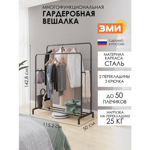 Вешалка напольная двойная "Радуга 4" от бренда ЗМИ станет стильным и практичным решением для организации хранения одежды в прихожей, спальне или гардеробной. Эта вместительная вешалка выполнена из прочного металла с порошковым покрытием, что гарантирует ее долговечность и устойчивость к повреждениям. Двойная конструкция с рейлами, выдерживающими нагрузку до 25 кг каждый, позволяет разместить большое количество одежды, а боковые крючки предназначены для сумок, шляп и других аксессуаров. Наличие полки дополнительно расширяет возможности хранения. Простая сборка и удобная упаковка с ручкой делают эту вешалку идеальным выбором для любого дома.