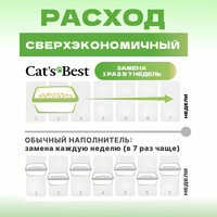 Наполнитель Cat’s Best Original, ранее выпускавшийся под названием Cat’s Best Eko Plus, вырабатывается из вторичного древесного сырья. Применение таких материалов сохраняет здоровые природные лесные ресурсы. Особенности наполнителя для кошачьего туалета Cat’s Best Original: Экологически чистый и биоразлагаемый на 100%. Производится из вторичного древесного сырья — производство кошачьих наполнителей не требует вырубки леса! Не содержит искусственных химических добавок; Очень экономичный. Примерно в 3 раза выгоднее многих других комкующихся наполнителей. Он может существенно дольше оставаться в кошачьем лотке, и тем самым является более экономичной альтернативой многих, как ошибочно полагают, более дешевых наполнителей, что подтверждают сравнительные тесты; Лучший по поглощению запаха. Благодаря новой технологии ICS2 WOOD FIBRE TECHNOLOGY® усовершенствованные древесные волокна еще быстрее и эффективнее впитывают влагу и нейтрализуют неприятные запахи, без химических добавок или ароматизаторов. Кошки любят естественный, свежий запах растительных волокон. Сделайте приятное себе, и своей кошке! Впитывает в 7 раз больше собственного объема; Не содержит искусственных ароматизаторов и отдушек; Образует плотные комки, которые легко удаляются; Утилизируется в городскую канализационную сеть; Растительные волокна характеризуются приятной мягкостью и отсутствием пыли, что обеспечивает комфорт для кошачьих лап и чувствительных органов дыхания;