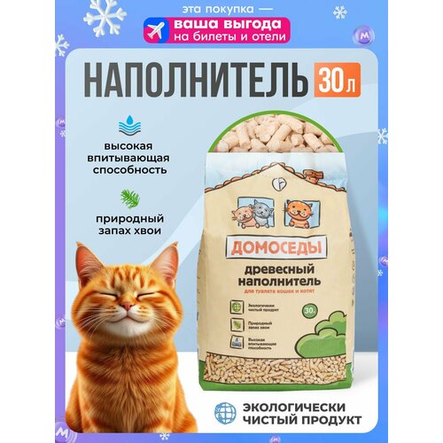 Наполнитель Домоседы древесный для туалета кошек и котят. Древесный наполнитель в виде гранул диаметром 6 мм. Произведен из древесины хвойных пород, имеет естественный запах хвои, эффективно впитывает жидкость и удерживает неприятные запахи. Это универсальное средство для ухода за кошками, грызунами, рептилиями и птицами. Экологически чистый продукт, на 100% биоразлагаем.