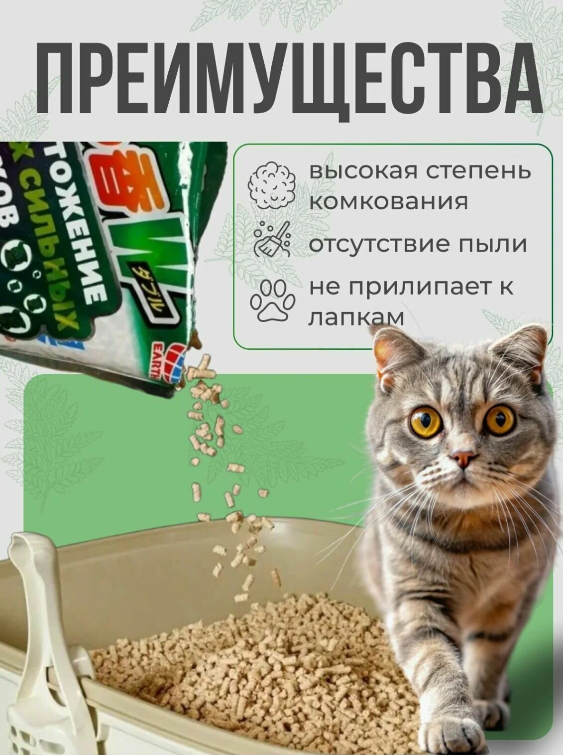 антибактериальный, ароматизированный, возможность утилизации в канализации, гипоаллергенный, гранулированный, для длинношерстных, для котят, контроль запаха, смываемый
