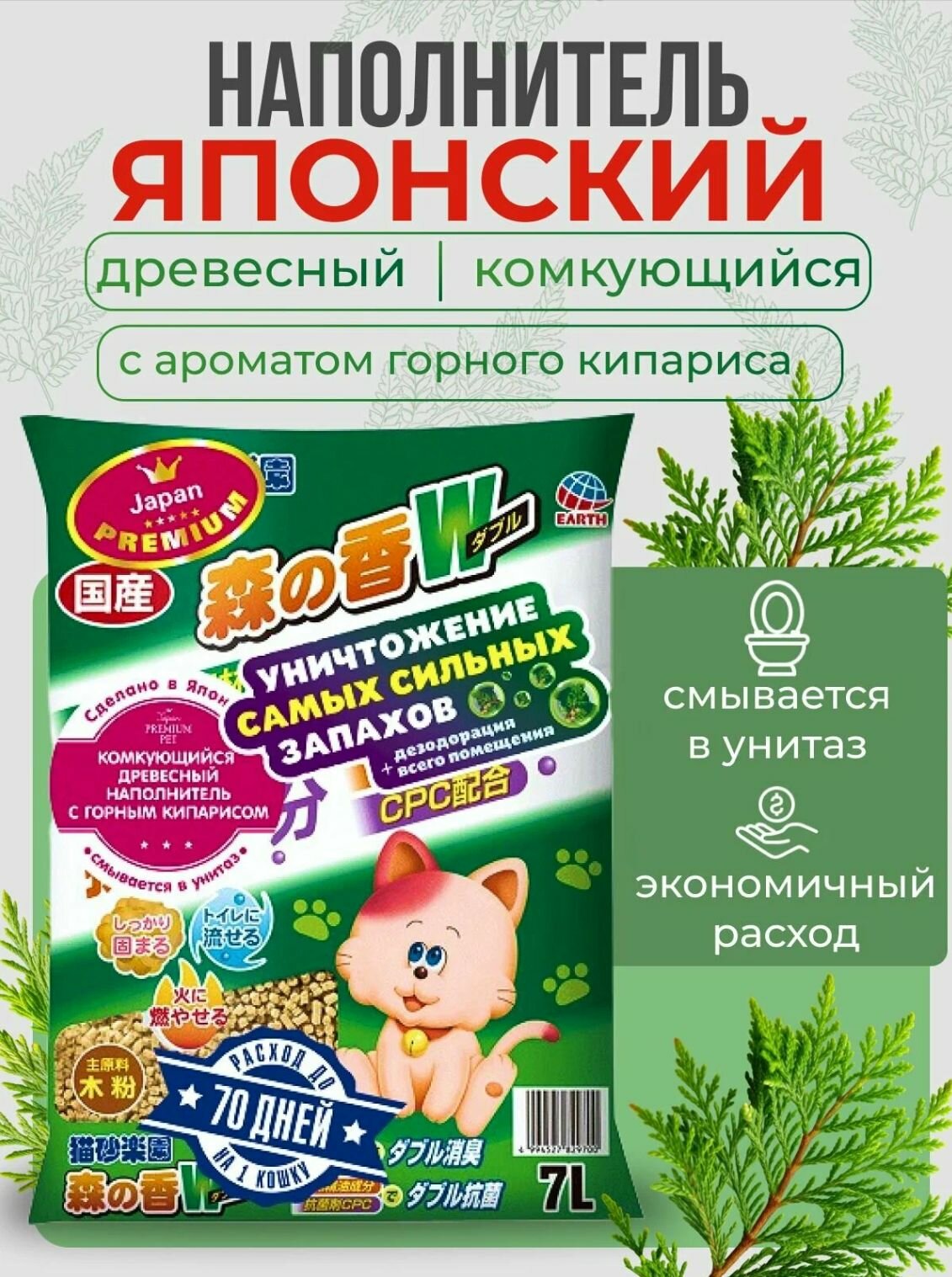 Купить Наполнитель для кошачьего туалета Japan Premium Pet комкующийся древесный с кипарисом (аромат горного леса), 7л. с доставкой по всей России. Наполнитель для кошачьего туалета Japan Premium Pet комкующийся древесный с кипарисом (аромат горного леса), 7л.: сравнение цен, характеристики, фото, актуальное наличие и цены.