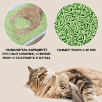| Дополнительная информация | гранулы зеленого цвета , комкуется в плотный комок , утилизируется в унитаз , впитывает влагу , нейтрализует запахи |