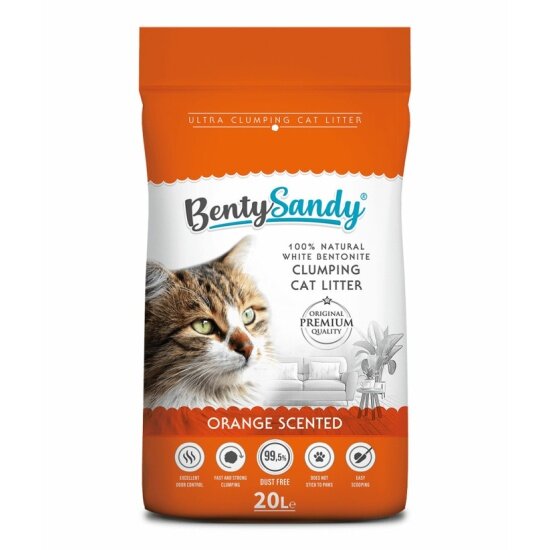Купить Наполнитель для кошачьих туалетов Bentysandy Orange комкующийся, бентонитовый, с ароматом апельсина, 17,2 кг (20 л) с доставкой по всей России.