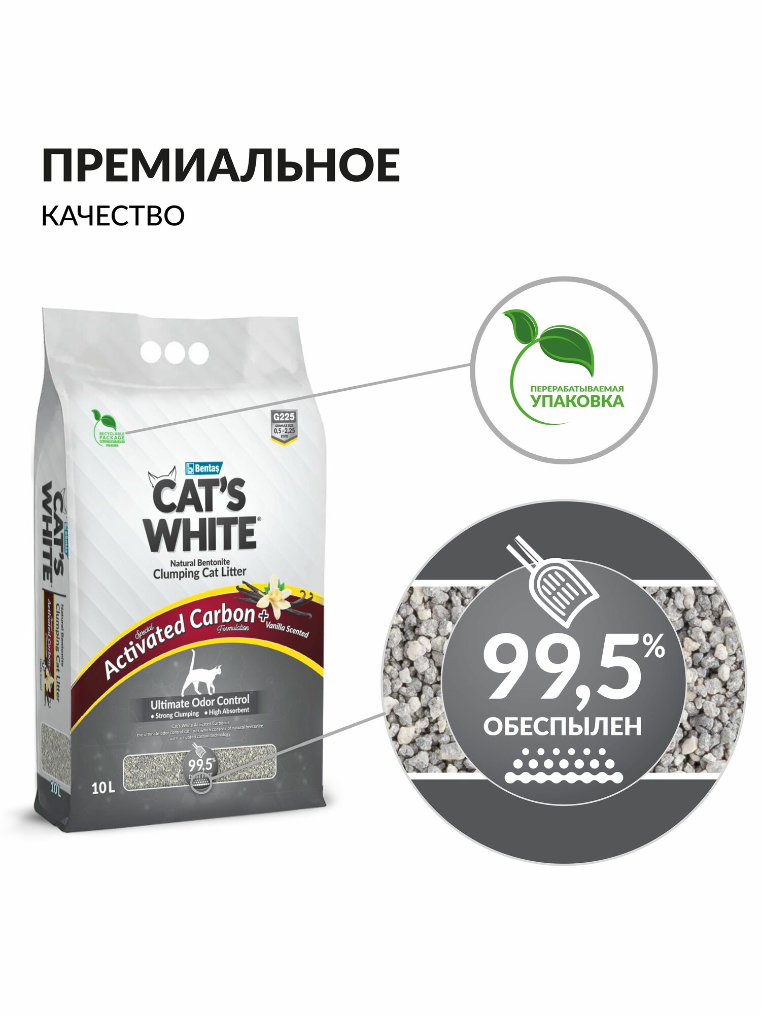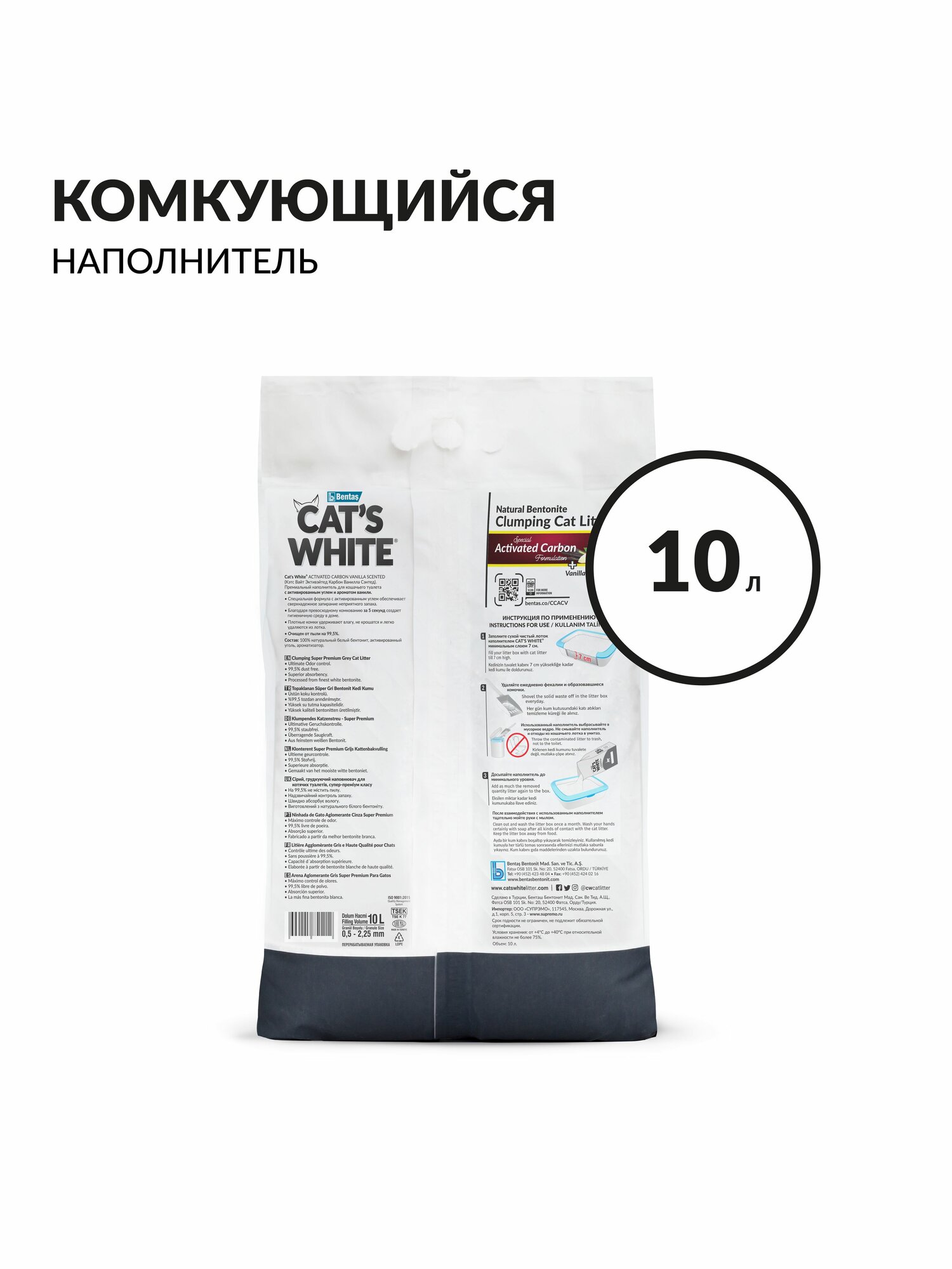 Купить Cat’s White Activated Carbon Vanilla комкующийся наполнитель с активированным углем и ароматом ванили для кошачьего туалета (10л) с доставкой по всей России.
