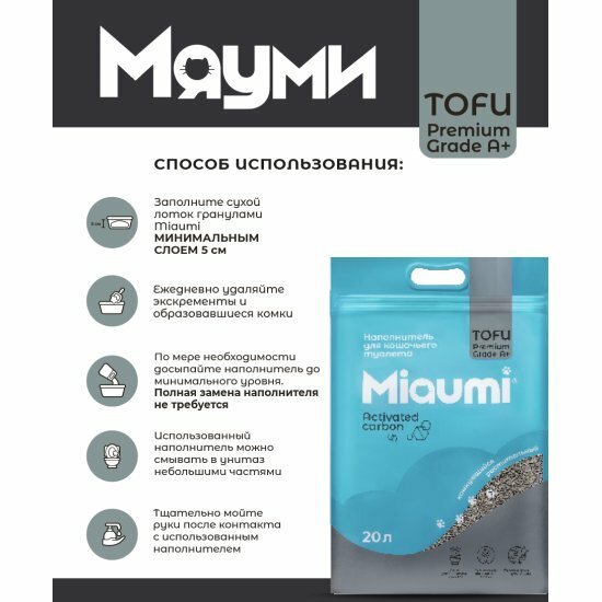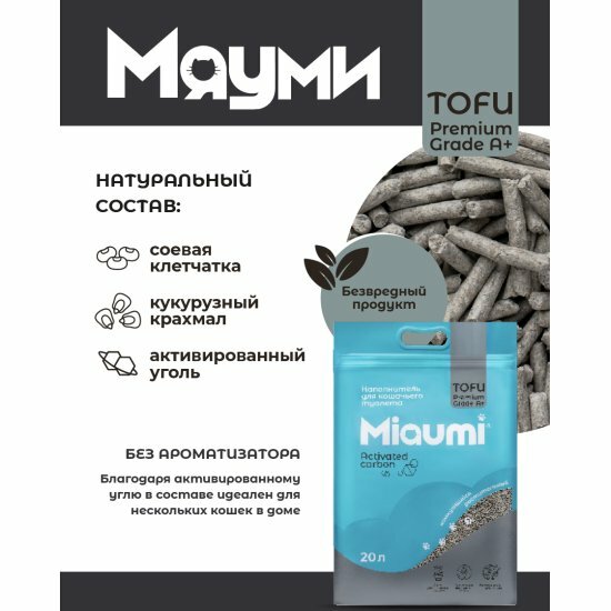 Купить Наполнитель для кошачьих туалетов Miaumi TOFU Activated Carbon Unscented комкующийся растительный/Тофу, с активированным углем, 20л с доставкой по всей России.